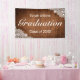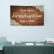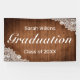 Stylish graduation banner. Rustic style with wood planks background and white lace decor.