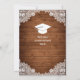 Graduation thank you card. Rustic style with brown wood planks background and white lace decor.