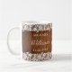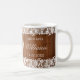 Rustic Wood & White Lace Heart Ring Wedding Mr Mrs Coffee Mug