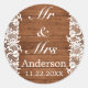Rustic Wood & White Lace MR MRS Wedding Classic Round Sticker