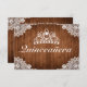 Rustic Wood & White Lace Tiara Qinceanera RSVP Card