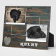 Rustic Wood with Heart Pet Dog 2 Photo Collage plaque. This custom plaque has 2 photos and name on a rustic dark wood background. The background has a white scribble heart and white spots. Personalise the plaque with your dog or any other pet photo and name.