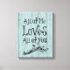 Rustic Wood with Love Quote Canvas Prints. Rustic Grey barn wood background with sheer blue overlay featuring the love quote 'all of me loves all of you' with vintage flourish accent.