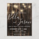 Rustic Wood With String Lights Wedding Invitation Postcard