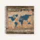 Rustic country barn wood background with a vintage map and moveable heart location, with personalised bride and groom names on a casual notebook style guest book perfect for a vintage travel theme or rustic beach style eco travel destination wedding. EDIT THE MAP COLOR, HEART COLOR AND LOCATION, and fonts by clicking CUSTOMIZE FURTHER to edit our guest book template.