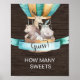 This Rustic Baby Shower How Many Sweets Game Poster features a cute wild animals flying in a hot air balloon on the wooden background. Personalise it and enjoy it.