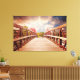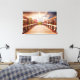 Canvas print with a scenic photograph. A wooden bridge leading towards a pathway surrounded by forest trees changing colour.