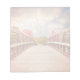 A notepad with a scenic looking wooden bridge leading into a pathway surrounded by forest trees changing colour.