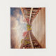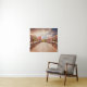 Tapestry with a scenic photograph. A wooden bridge leading towards a pathway surrounded by forest trees changing colour.