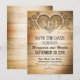 rustic wood heart save the date cards with love heart carving and country style typography.