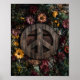 This poster features a rustic wooden peace symbol centred against a weathered wood background, framed by a lush arrangement of wildflowers. The composition blends earthy textures with vibrant blooms in warm autumn tones, including sunflowers, daisies, and dried blossoms. The natural wood grain of the peace sign adds a handcrafted feel, while the floral wreath creates a harmonious balance between strength and softness. Perfect as bohemian wall art, it evokes a sense of peace, freedom, and nature-inspired living. Ideal for cosy interiors, eclectic spaces, or as a statement piece in a rustic home, this design merges hippie style with timeless elegance.