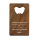 Designed to stand out, our Rustic Wooden Wedding Favour Credit Card Bottle Opener is more than a tool; it's a symbol of gratitude. The rustic brown wooden texture background adds a touch of warmth, making it versatile for various rustic wedding themes.
