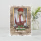 Unique, classic, trendy, pretty and decorative Holiday card, with a pretty dark red and green coloured floral wreath. With room to customise or personalise with a photo and names (or family name) of your choice on a rustic country cottage style weathered farmhouse barn wood planks texture pattern. And a customisable season greeting poem on the backside of the card.