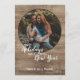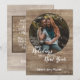 Unique, classic, trendy, rustic and decorative Holiday card, with Happy Holidays Joyful New year text quote, and room to customise or personalise with a photo and names (or family name) of your choice on a rustic country cottage style weathered farmhouse barn wood planks texture pattern. And a customisable season greeting poem on the backside of the card.