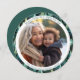 Share some holiday cheer with this beautiful, rustic round Christmas card featuring a woodland-inspired design. The soft green background, accented by elegant, painted pine trees, brings a cosy, nature-filled touch to your holiday greetings.