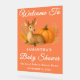 Welcome guests with the warm charm of autumn using this rustic woodland deer and pumpkin fall baby shower sign. Featuring a sweet baby deer surrounded by watercolor pumpkins, sunflowers, and rich seasonal foliage, it’s perfect for a farmhouse, country, or woodland-inspired celebration. Personalise for a heartfelt and memorable entrance.