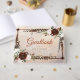 Featuring a wooden frame bordered by an assortment of white, hickory and burgundy flowers, let your guest share their well-wishes and messages with this guestbook from the Rustic Woodland Feathers and Floral Bloom Collection. Personalise with your name and wedding date on the front, your initials at the back and your custom text on the spine of the guestbook. The background is set on a beige, chestnut, taupe and umber hand painted canvas with moveable graphic elements for an even greater degree of customisation.
