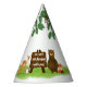 Paper party hat for kid's birthday with the theme of rustic woodland calling all forest animals.