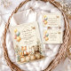 Celebrate the mum-to-be with this rustic woodland baby shower design featuring a sweet fox, bunny, and teddy bear sitting on wooden toy blocks, surrounded by wildflowers, butterflies, and pastel balloons. A charming countryside theme that feels warm, cosy, and perfect for a forest-inspired celebration.