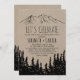 This rustic woodsy mountain let's celebrate invitation is perfect for a woodland engagement party. The nature inspired design features the silhouette of a pine tree forest and mountains on faux kraft paper. This invitation is perfect for an engagement party, bachelorette party, or any event or party.