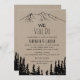This rustic woodsy mountain vow renewal invitation card is perfect for a woodland vow renewal ceremony and celebration. The nature inspired design features the silhouette of a pine tree forest and mountains on faux kraft paper.