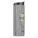 An elegant gold hibiscus floral wreath where you can customise it on a rustic grey wood backdrop where gold glittery drops rain down creating chic farmhouse vibes.