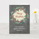 Merry Christmas for friend and her family card with rustic watercolor wreath and holly berries and vintage chalkboard pattern.