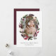 Elegant botanical holiday cards feature your favourite photo encircled by a rustic oval wreath of soft green and maroon foliage and blush flowers. Personalise with your custom greeting and names beneath; shown with "Season's Greetings."