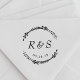 Custom-designed wedding monogram/initial stamp featuring hand-drawn botanical wreath and vintage style ampersand. Personalise with bride and groom/couple's initials and wedding date. Perfect for rustic, boho, and greenery themed weddings.