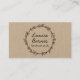 Rustic wreath business card printed on brown kraft paper. country chic design that frames your name in a decorative way.