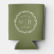 Rustic Wreath Wedding Monogram | Olive Green Can Cooler
