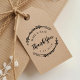 Custom-designed wedding favor thank you stamp featuring elegant hand calligraphy and hand-drawn botanical wreath ornaments. Personalize this beautiful circular stamp today to give envelopes or gift wrapping a touch of style! This stamp is also perfect for any holiday cards, DIY gifts and more!