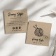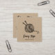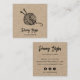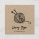 Rustic brown kraft business cards for your handmade, artisan, or craft business feature two lines of custom text on the front in handwritten style block and script lettering, with an illustration of a ball of yarn with two knitting needles. Add five lines of custom text to the reverse side in matching fonts. Includes three social media icons and a field for your username.