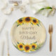 Rustic Yellow Sunflowers Custom Happy Birthday Paper Plate