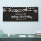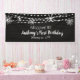 Add this personal touch to your child's First Birthday party. Welcome your guests with a personalised indoor banner. It has a blue textured background with a dreamy scene featuring string lights and snowflakes, Personalise by adding a name and a date. Check out our many other matching products in this collection to make your celebration complete and customisable.