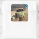 Rusting car in front of abandoned farm square sticker