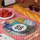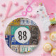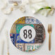 Old rusty license plate collection for 88th birthday party.