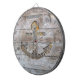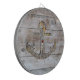 A rusty ship anchor on a coastal rustic weathered wood boardwalk