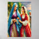 Ruth’s heartfelt decision to accompany Naomi is beautifully depicted in this serene scene. The pastoral landscape, with vibrant fields and a rustic cottage, emphasises themes of humility and fresh starts. Their clasped hands and gentle expressions convey compassion and trust as they walk together through life’s uncertainties. Ruth's vibrant garments symbolise her courage and determination. Rooted in the timeless message of the Book of Ruth, this depiction captures the beauty of loyalty, resilience, and the transformative power of faith and love in navigating life’s most challenging moments.