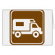 International style road and highway sign advising of recreational facilities, specifically: RV camping.