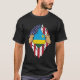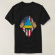 I give wanted to give this a 4 instead of a 5 because these Basic DARK T0shirts run unexpectedly SLIM or Narrow. Which is great if you do not have a potbelly, but I have a paunch. It isn't the shirt's fault that I've got a beer belly. The design and shirt itself is a quality cotton shirt. The color is more of a deep purple, but still a very pretty color. The Basic DARK T-shirts run a bit SLIMMER than the Basic Ts. The neck is a fraction narrower (or seems to be narrower) also. I'm a paunchy middle-aged woman and my neck is 12 inches (31cm) thick and the neckline fell about the same as in the photo of the man, and I had the desire to tug it a bit. So if you're a thick necked man or like loose shirts, be aware these are slimmer shirts. Once I get rid of my lockdown paunch it'll look great. The shirt washed well in cold water with no apparent bleeding. We don't have a dryer, so it hung dry. Did not shrink. Love the colors and the design. The design looks smaller on my shirt than it does on the model on-line. But still, it looks good on the shirt. The printing looks as it does on the model, just the size seems fractionally smaller. Washed garment in cold water, hung dry and design appeared unaffected.