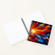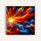 Explosive swirls of red, orange, and blue clouds radiate from a glowing sun in this stunning abstract cosmic design. A bold and inspiring notebook cover for artists, writers, or dreamers.