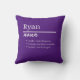 Introducing the "Ryan, Boy Personalised Name Definition Throw Pillow" – a delightful addition to any home decor that celebrates the unique meaning behind the name Ryan. This high-quality throw pillow features a stylish design that elegantly displays the name Ryan along with its definition, making it a perfect personalised gift for boys named Ryan. Crafted from soft, wrinkle-free polyester, this pillow not only adds a personal touch to your space but also ensures comfort and durability. Ideal for bedrooms, living rooms, or nurseries, this throw pillow is a charming way to highlight the significance of the name Ryan.