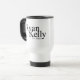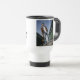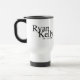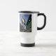 Travel mug featuring the "In Time" logo and a photo of Ryan standing on a bridge