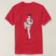 I give wanted to give this a 4 instead of a 5 because these Basic DARK T0shirts run unexpectedly SLIM or Narrow. Which is great if you do not have a potbelly, but I have a paunch. It isn't the shirt's fault that I've got a beer belly. The design and shirt itself is a quality cotton shirt. The color is more of a deep purple, but still a very pretty color. The Basic DARK T-shirts run a bit SLIMMER than the Basic Ts. The neck is a fraction narrower (or seems to be narrower) also. I'm a paunchy middle-aged woman and my neck is 12 inches (31cm) thick and the neckline fell about the same as in the photo of the man, and I had the desire to tug it a bit. So if you're a thick necked man or like loose shirts, be aware these are slimmer shirts. Once I get rid of my lockdown paunch it'll look great. The shirt washed well in cold water with no apparent bleeding. We don't have a dryer, so it hung dry. Did not shrink. Love the colors and the design. The design looks smaller on my shirt than it does on the model on-line. But still, it looks good on the shirt. The printing looks as it does on the model, just the size seems fractionally smaller. Washed garment in cold water, hung dry and design appeared unaffected.