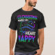 I give wanted to give this a 4 instead of a 5 because these Basic DARK T0shirts run unexpectedly SLIM or Narrow. Which is great if you do not have a potbelly, but I have a paunch. It isn't the shirt's fault that I've got a beer belly. The design and shirt itself is a quality cotton shirt. The color is more of a deep purple, but still a very pretty color. The Basic DARK T-shirts run a bit SLIMMER than the Basic Ts. The neck is a fraction narrower (or seems to be narrower) also. I'm a paunchy middle-aged woman and my neck is 12 inches (31cm) thick and the neckline fell about the same as in the photo of the man, and I had the desire to tug it a bit. So if you're a thick necked man or like loose shirts, be aware these are slimmer shirts. Once I get rid of my lockdown paunch it'll look great. The shirt washed well in cold water with no apparent bleeding. We don't have a dryer, so it hung dry. Did not shrink. Love the colors and the design. The design looks smaller on my shirt than it does on the model on-line. But still, it looks good on the shirt. The printing looks as it does on the model, just the size seems fractionally smaller. Washed garment in cold water, hung dry and design appeared unaffected.