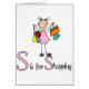 Customisable stick figure card with girl stick figure shopping and text that reads "S is for Shopping".
