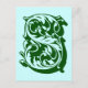 S postcard. Background colour can be customised.