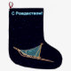 A dog sled with a teal sled bag superimposed on a starry background. Cyrillic (Russian) text reading "S Rozhdestvom" (С Рождеством - A Russian Christmas greeting) appears in glowing blue and white. You may personalise the stocking by adding a bit of text on the sled bag.