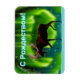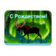 An ever so slightly stylised image of a moose silhouetted against the Northern Lights. Cyrillic text reading "S Rozhdestvom" (С Рождеством - A Russian Christmas greeting) appears in glowing blue and white.